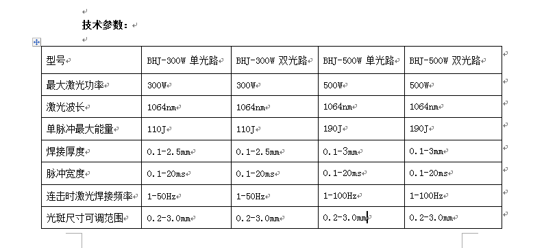 型號 | 功率 | 熔深(mm) | 焊接厚度(mm) | 參考金屬 |