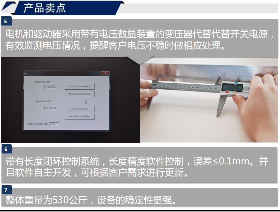 6.帶有長度閉環(huán)控制系統(tǒng),長度精度軟件控制,誤差≤0.1mm。并且軟件自主開發(fā),可根據(jù)客戶需求進行更新。