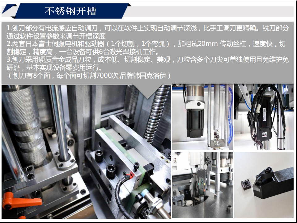 2.兩套日本富士伺服電機和驅(qū)動器(1個切割,1個彎?。?,加粗試20mm 傳動絲杠,速度快,切割穩(wěn)定,精度高,一臺設(shè)備可供6臺激光焊接機工作。
